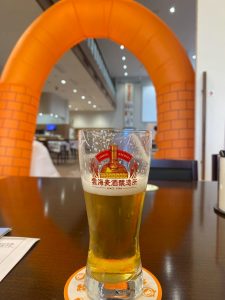 私たちが吊り橋の次に訪れたのは、「雲海酒造(うんかいしゅぞう)」さんが運営する「酒仙の杜(しゅせんのもり)」です。ここでミカンの味がする地ビール、おひとり様2杯まで、の試飲をさせて頂きました。