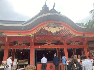 立派な作りの神社で、これまた先に書きましたが、神武天皇のお爺さんにあたる「山幸彦(やまさちひこ)」こと天津日高彦火火出見命(アマツヒダカヒコホホデミノミコト)とその妃・豊玉姫命(トヨタマヒメノミコト)、海の神様である塩筒大神(シオヅツノオオカミ)を祀っているそうです。